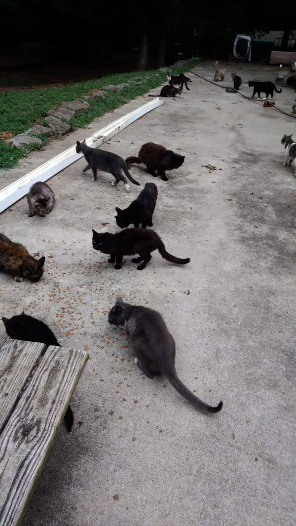 The charity’s volunteer base is fifteen dedicated people who come and do the actual hands on work. But they are supported by a network of local agencies that help secure food, litter, lower cost medical care, and maintenance of the grounds. The Ruffian Foundation has a President, VP, Secretary, and Board of Directors who are all volunteers. However, as an all-volunteer 501 (c)(3) charity, getting more hands on deck is The Ruffian Foundation’s biggest challenge – “If we had more volunteers, we could take in many more needy cats!â€