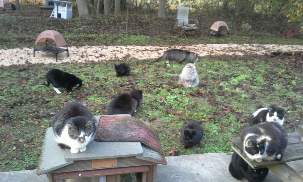 Dr. Howell, a long-time rescuer and foster for feral cats and kittens, had long dreamed of a safe place for feral cats that needed relocation. She donated 29 acres in rural Pender County and the start-up funds for the operation. Corning, Inc. donated the charity’s double wide which was retrofitted to provide for the special needs animals.
