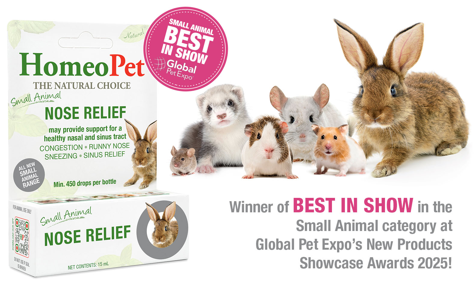 HomeoPet has officially been named the Best in Show winner in the Small Animal category at the 2025 Global Pet Expo’s New Products Showcase Awards! This prestigious recognition shines a spotlight on the most innovative, exciting pet products launching this year – and we’re incredibly proud to be among the very best.