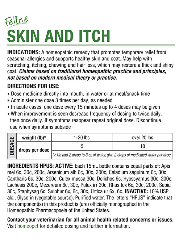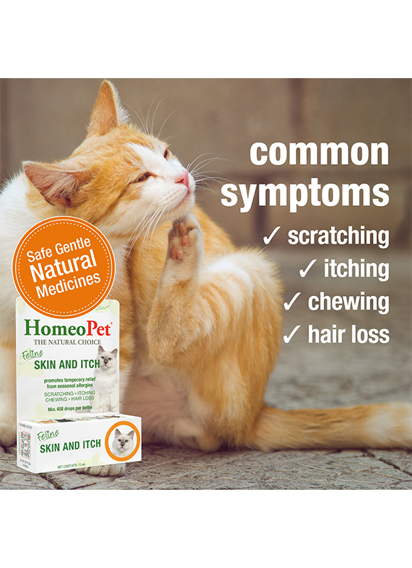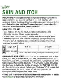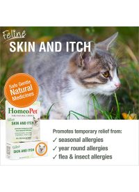 A veterinary-formulated natural remedy that may help promote temporary relief from seasonal allergies in cats. Safe, gentle and made with high-quality homeopathic ingredients, Feline SKIN AND ITCH may help to relieve scratching, itching, chewing, and hair loss which may help to restore a thick and shiny coat. If there is an element of anxiety it can be combined or alternated with HomeoPet FELINE ANXIETY.