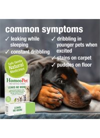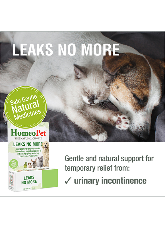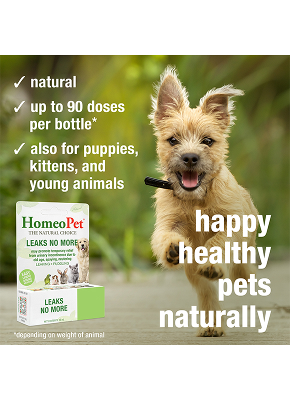 Easy to administer and safe and gentle for pets of all ages, HomeoPet LEAKS NO MORE offers a stress-free solution for pets and their owners. This trusted, natural remedy for urinary incontinence in animals may help to keep your pet comfortable and your home clean.