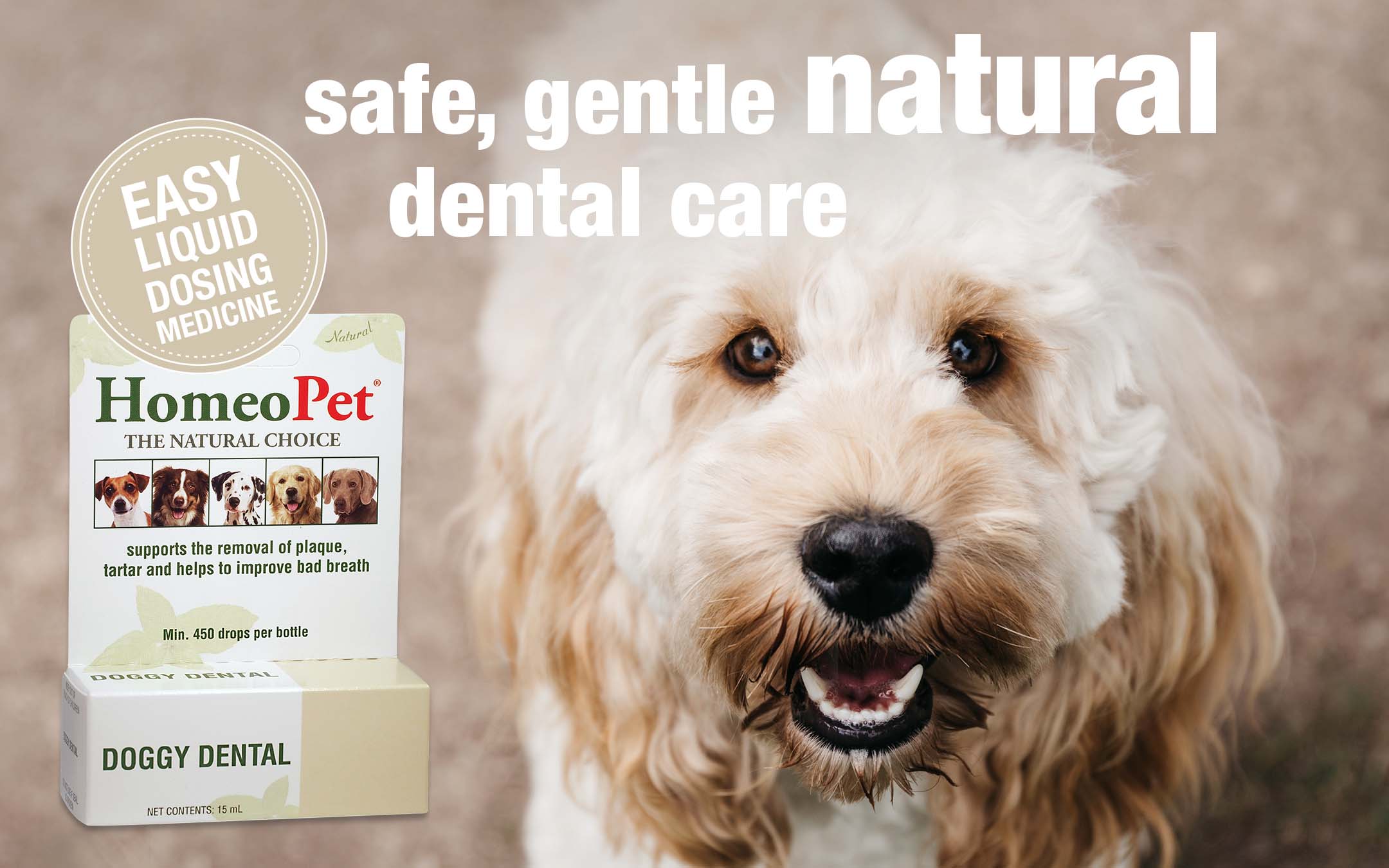 5. Dog tooth-care medicine. Our Doggy Dental (unfortunately not yet available in the UK) natural medicine is veterinary formulated to help support healthy teeth and gums in dogs. Simple and easy to dose and safe to use in dogs of all ages, Doggy Dental may help reduce the build-up of plaque and tartar and so could also assist with bad breath.